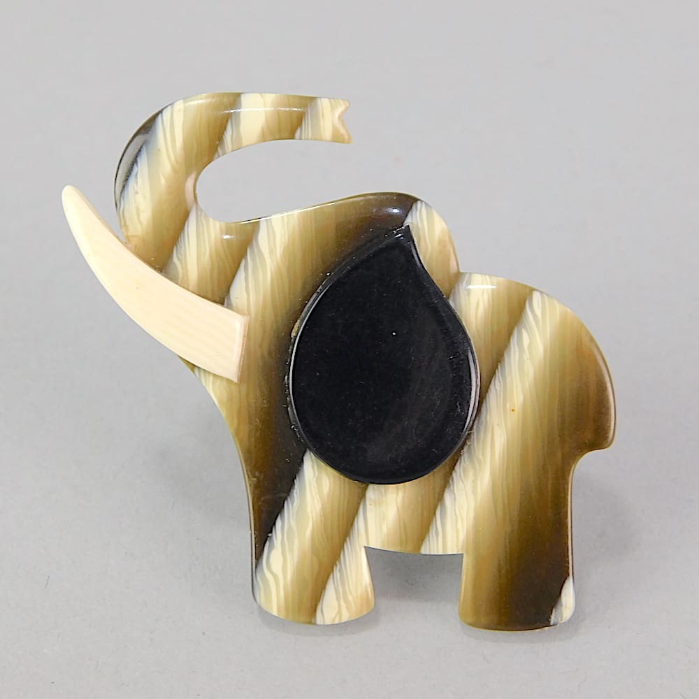 Vintage Elephant Brooch by Lea Stein. This elephant brooch is and unsigned piece by Lea Stein. Made in 1968 and fitted with a roll safety clasp. He is the smaller of the two elephants.