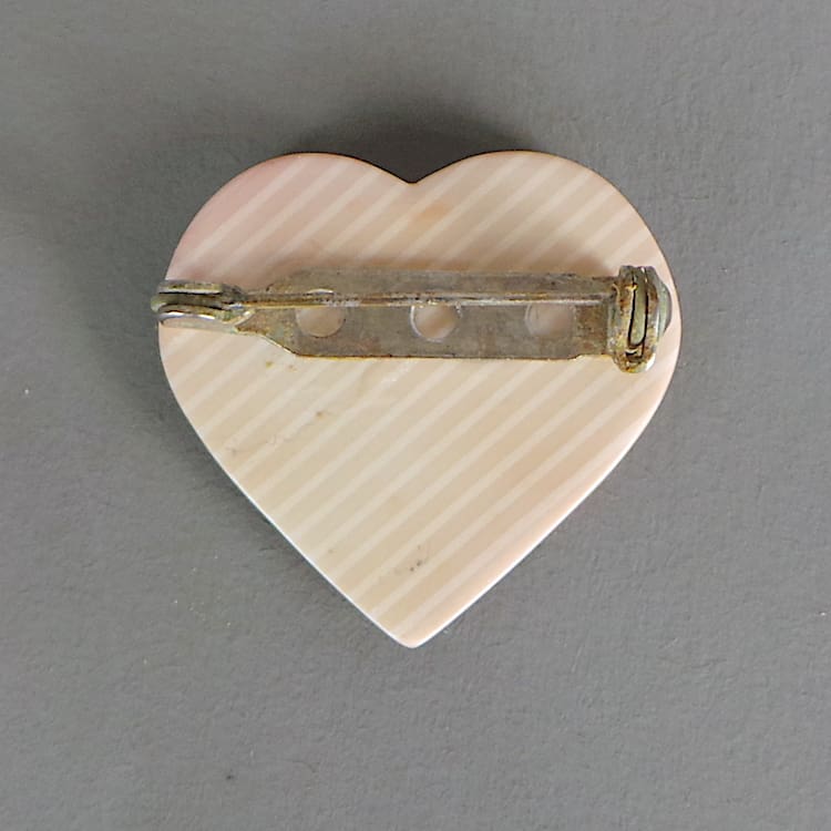 Early 1968 Lea Stein heart brooch. Unsigned as a very early brooch, but fitted with a roll safety clasp.