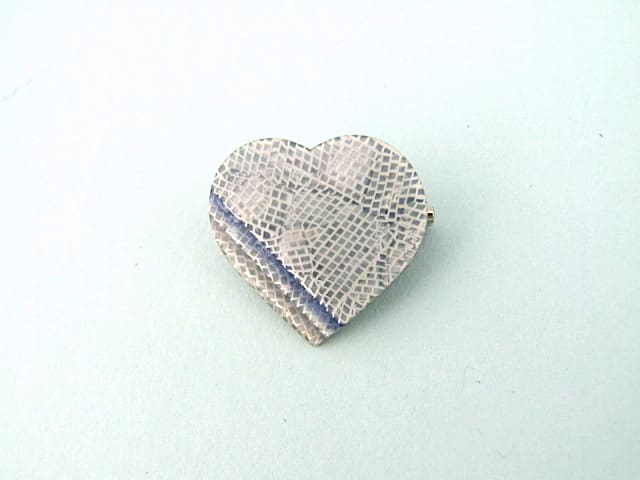Early 1968 Lea Stein heart brooch. I may have matching earrings to this brooch. Unsigned as a very early brooch, but fitted with a roll safety clasp.