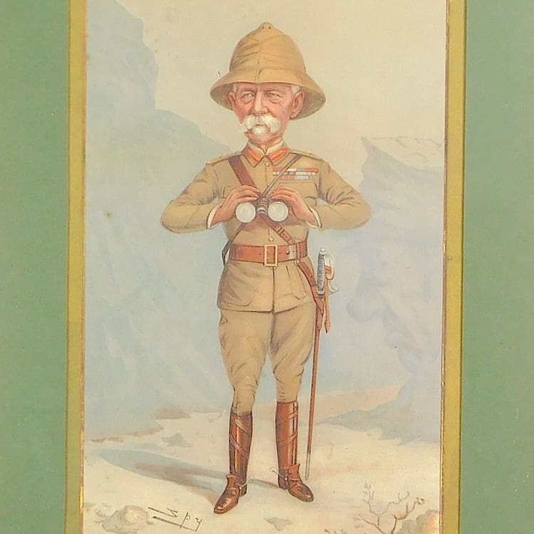 Original 1920s spy print for vanity fair of Field Marshall Lord Roberts (1900). Mounted in a black wooden frames.