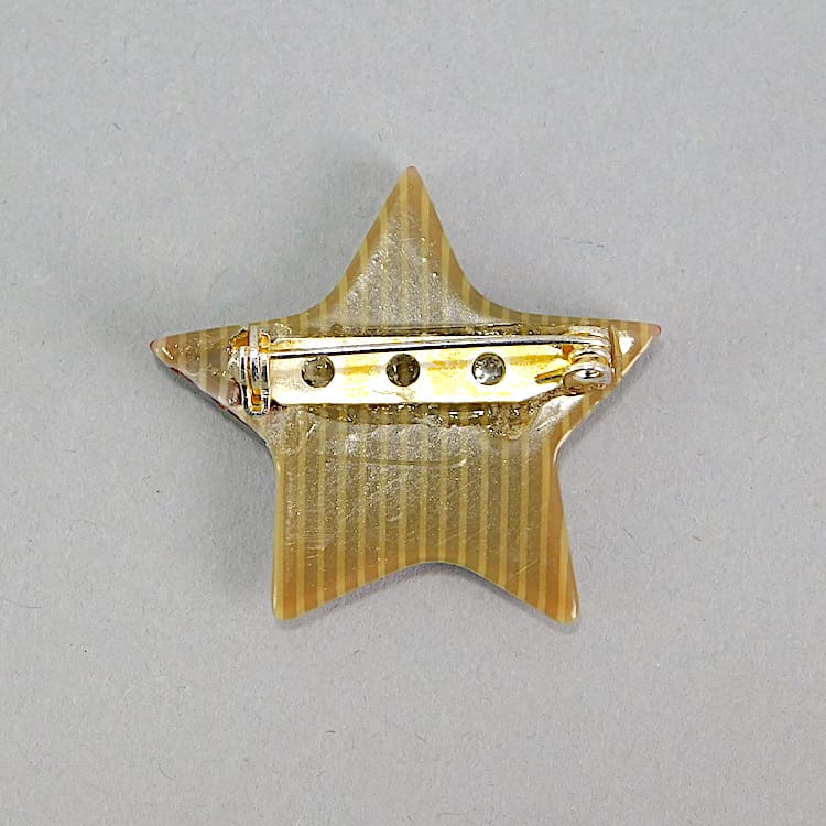 A 1960s early Lea Stein star brooch. Made before she used the signed V safety clasp, this one with straight safety clasp but unsigned.
