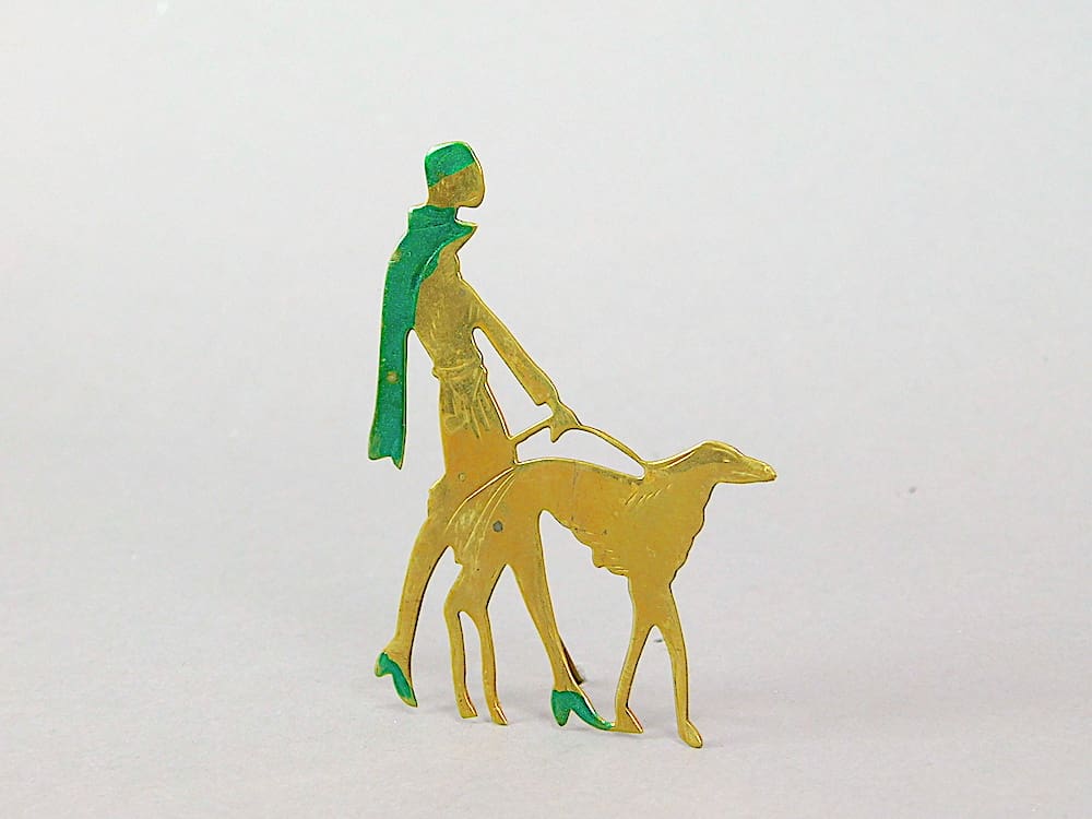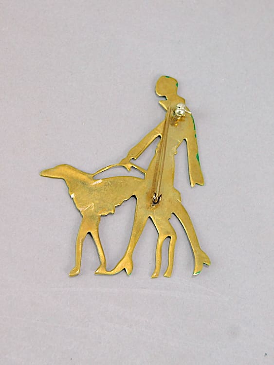 Original 1920’s Vogue brooch of a lady and borzois dog. These brooches were given free with a years subscription to Vogue in the 1920’s.