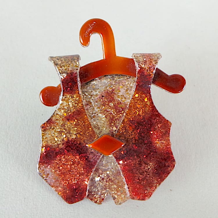 Early 1968 Lea Stein Waistcoat on a hanger brooch.