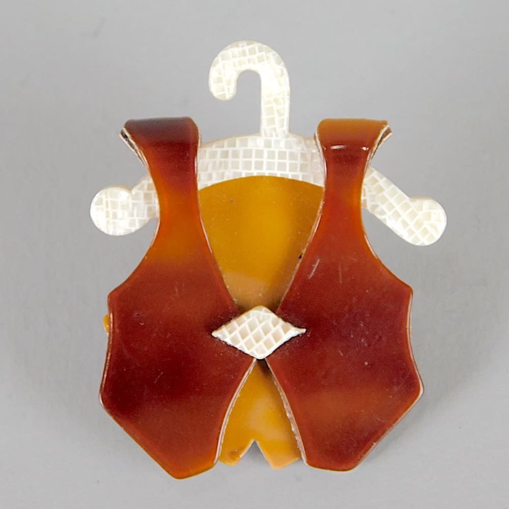 Early 1968 Lea Stein Waistcoat on a hanger brooch.