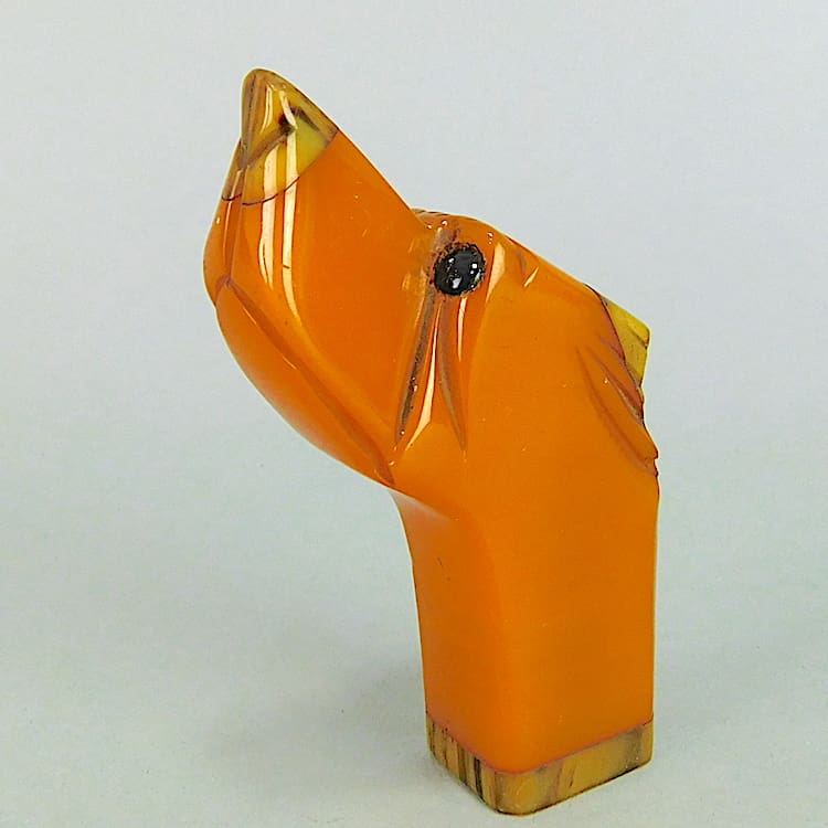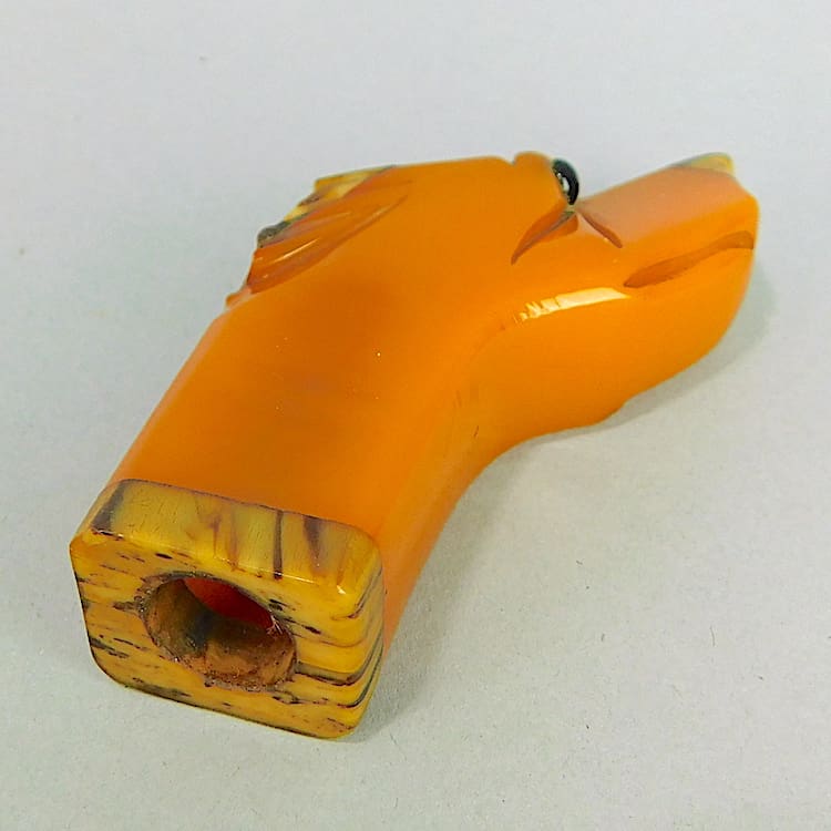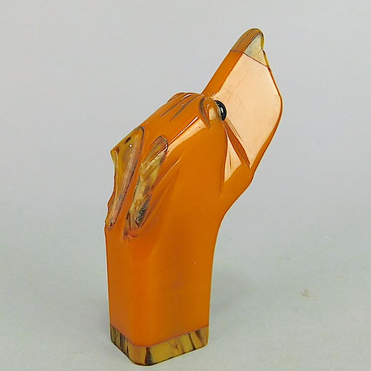 Amber coloured phenolic dog handle. Originally from a walking stick or an umbrella.