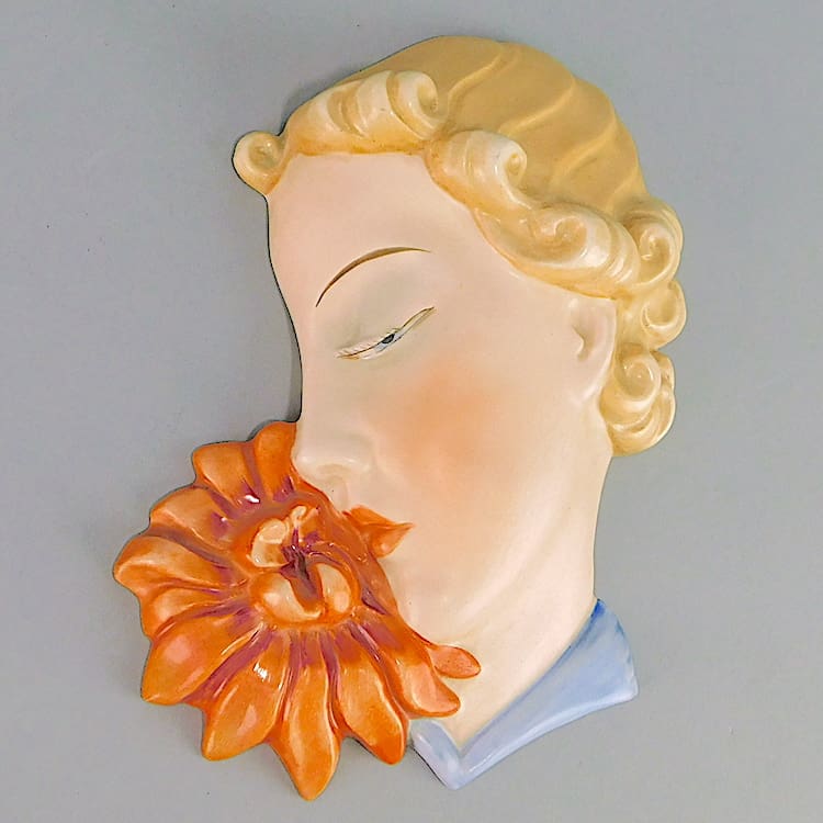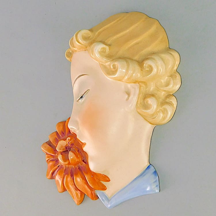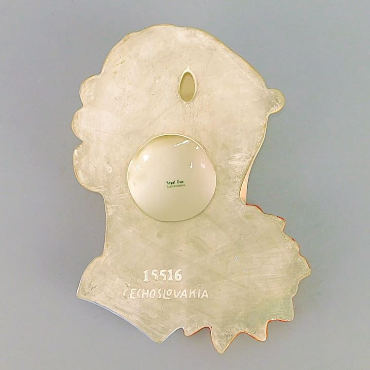 Fine ceramic flower lady wall mask made in Czechoslovakia by Royal Dux, stamped to the reverse.