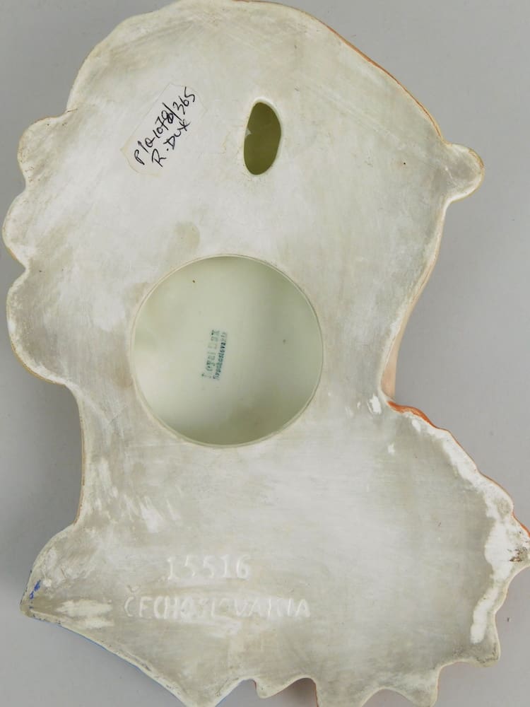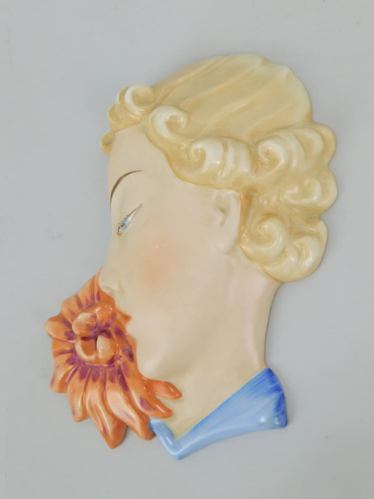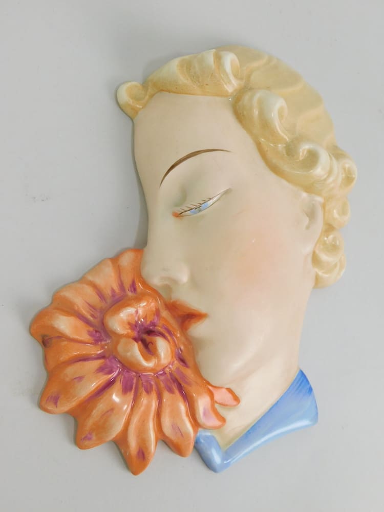 Flower Lady. Fine ceramic wall mask made in Czechoslovakia by Royal Dux, stamped to the reverse.