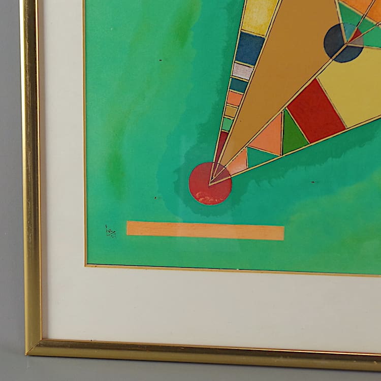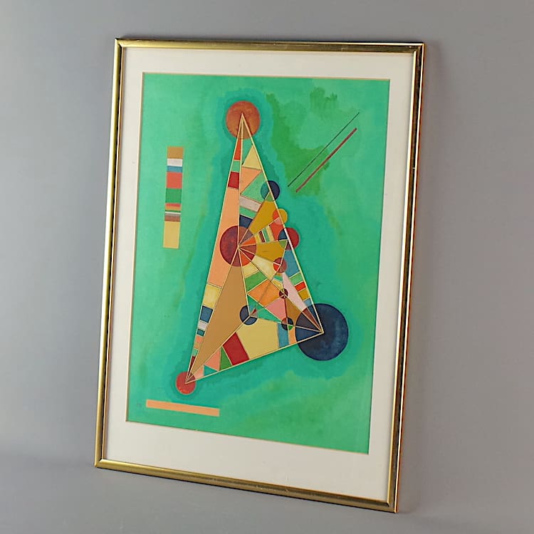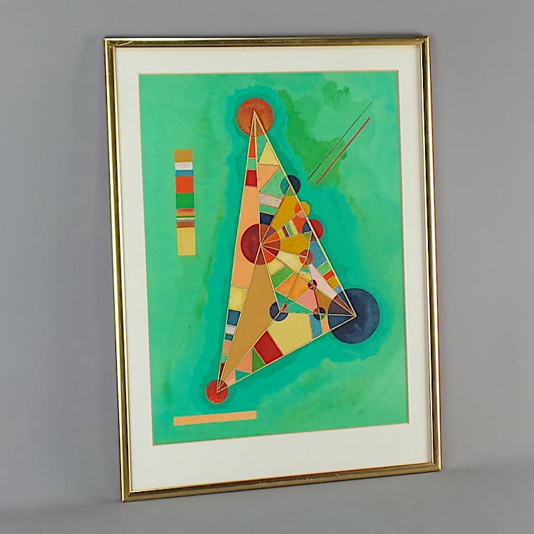 The original is by Russian artist Wassily Kandinsky and is named “Bunt im Dreieck” and was produced in 1927.