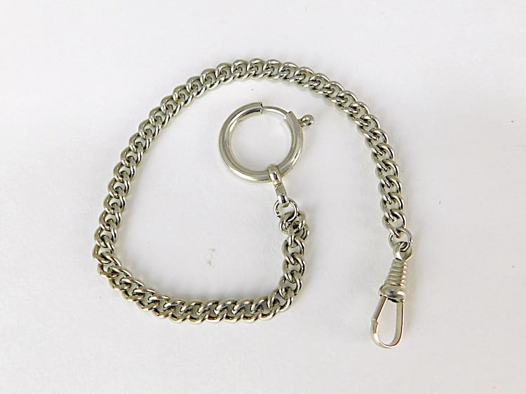 Chromed metal watch fob chain (chatelaine) by Jakob Bengel. Made in the 1920s, Bengel is famous for starting his business as a watch chain maker.