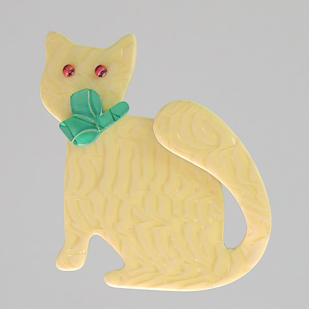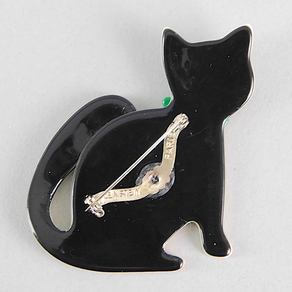 Vintage Lea Stein Watching cat brooch, signed on the V safety clasp.