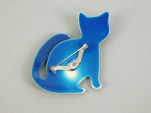 Vintage Lea Stein Watching Cat brooch, signed on the V safety clasp.