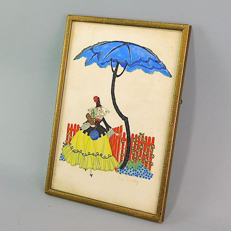 An original 1920s pen and ink and water colour, signed by the artist Jane Darley and mounted in an original gilt frame.