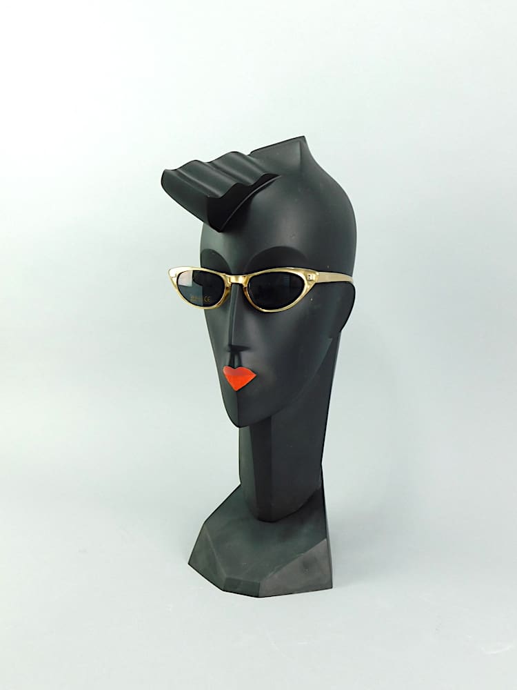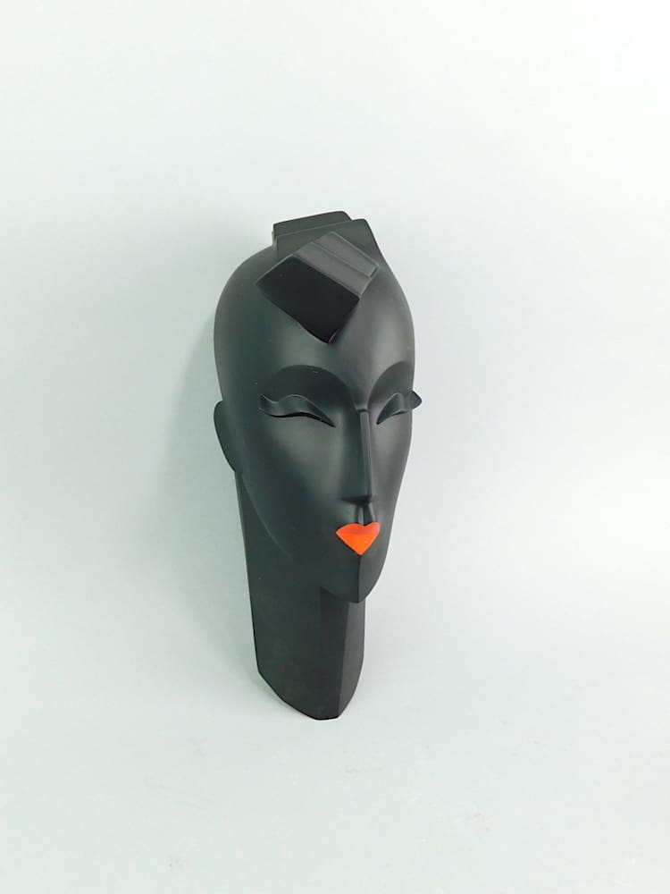 Black art deco neoplastic bust – her title is Waves. Signed and dated 1987 to the reverse.