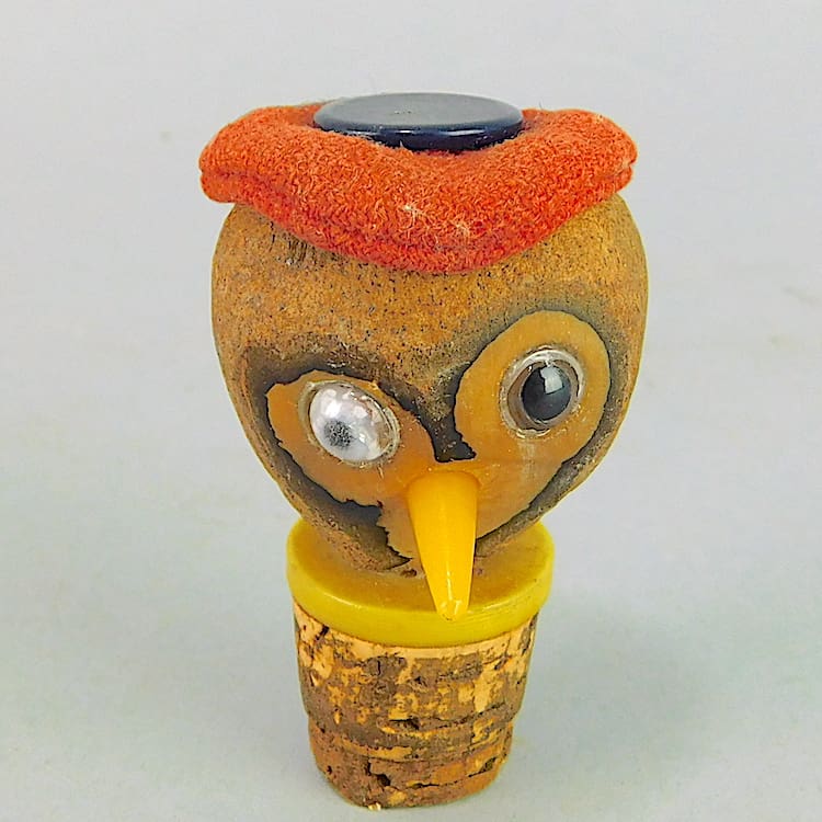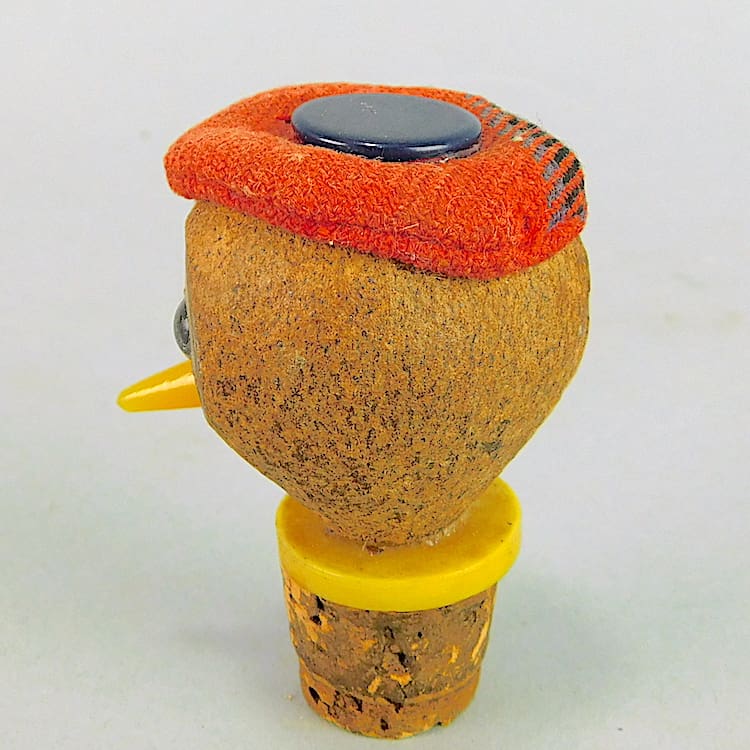 Art deco man nut head with glass eyes and phenolic nose, wearing a Scottish hat.
