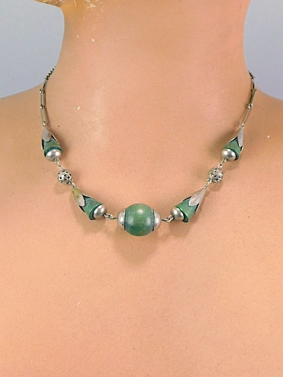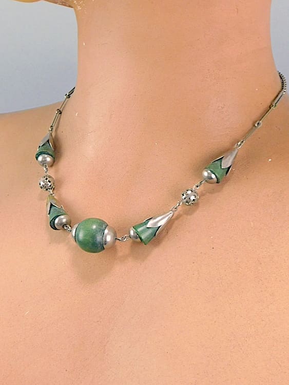 Early 1930’s green wooden bead and chrome necklace, made by the Jakob Bengel factory.