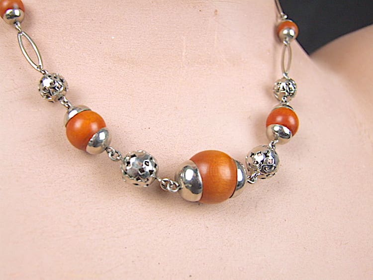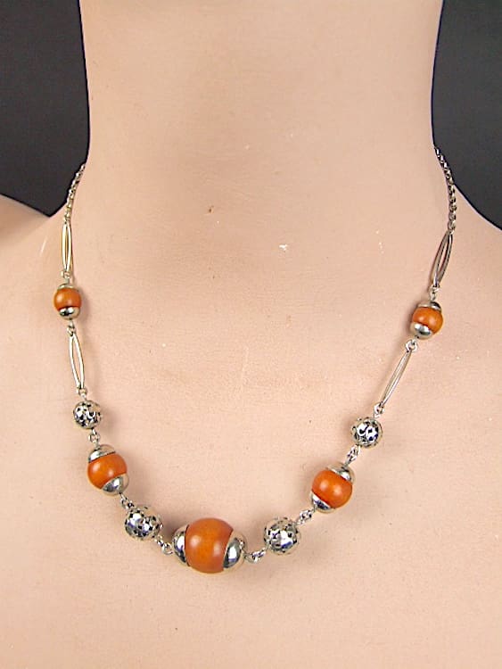 Delicate chrome and wooden balls necklace. Made by Bengel in the 1930’s.