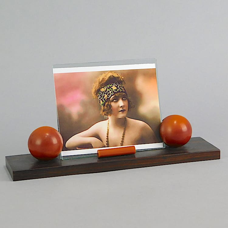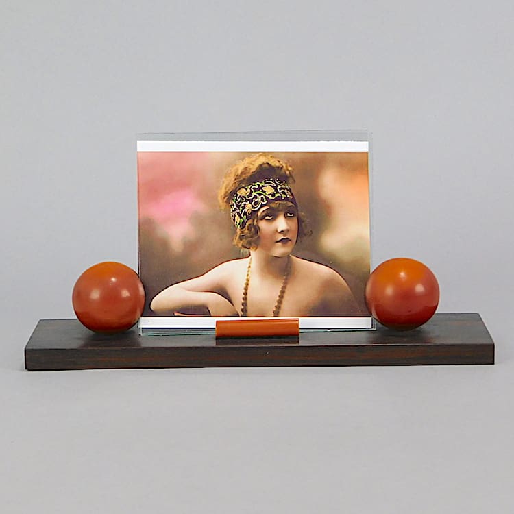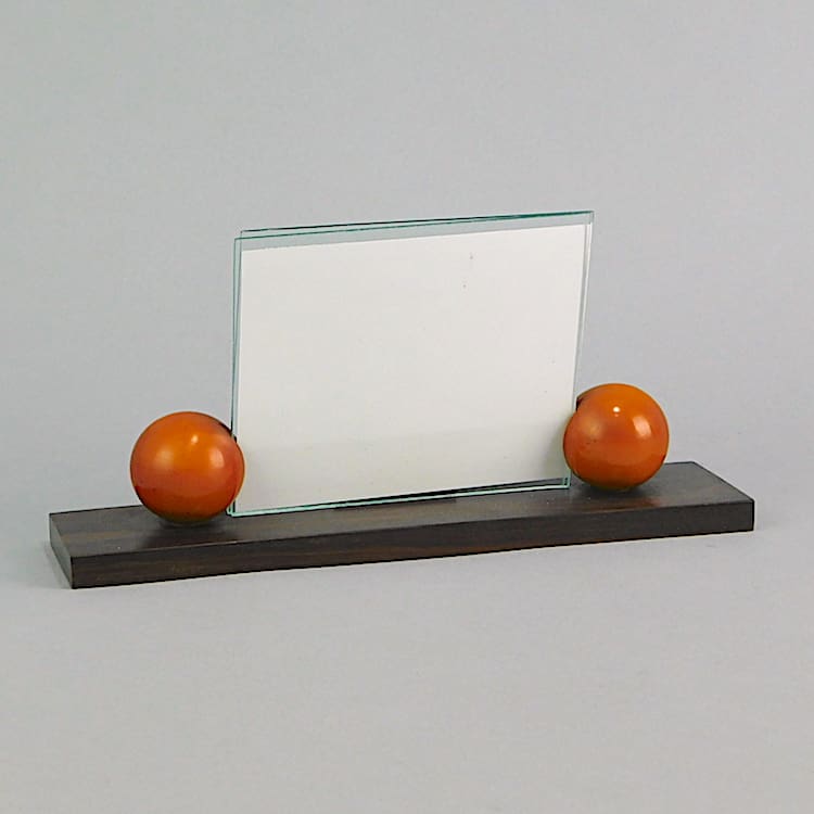 A French art deco Macassar ebony wooden base photo frame with phenolic balls.