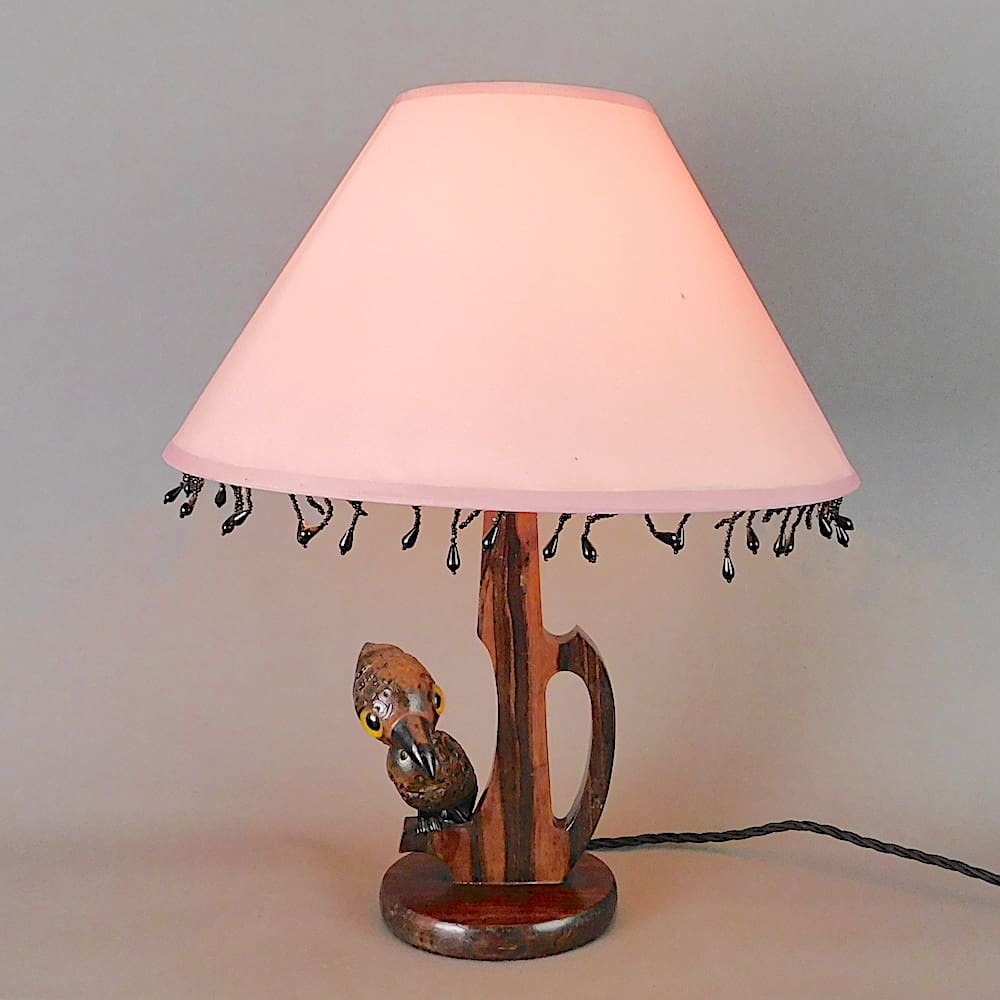 Rare large nut bird table lamp, part of the YZ range created by dunhill.
