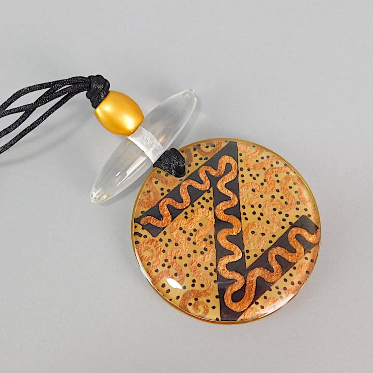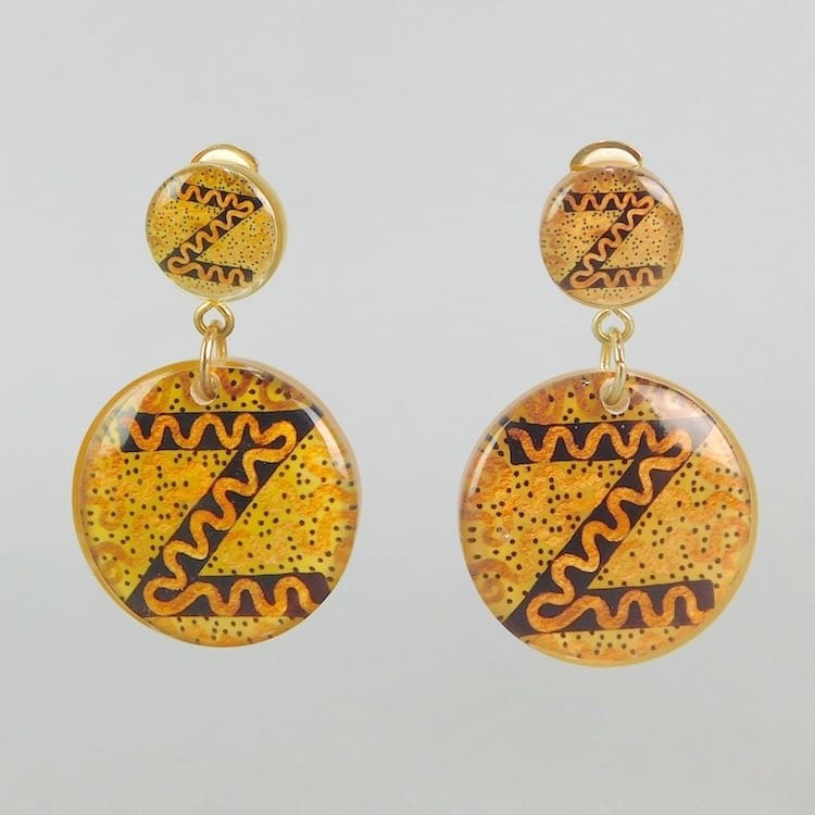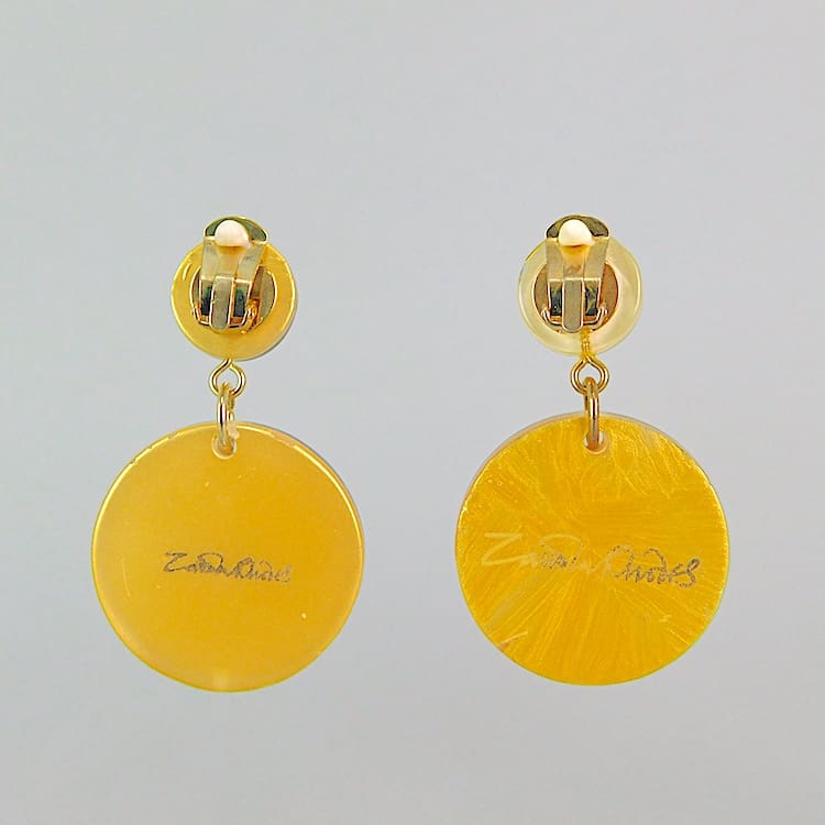 Rare Zandra Rhodes African design large phenolic necklace with matching clip on earrings. Signed to the back of all items – Zandra Rhodes and made in a limited edition.